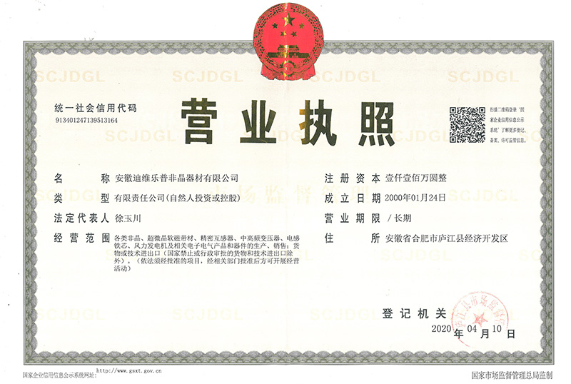 為響應國家標準化發(fā)展綱要,推動高質(zhì)量發(fā)展,建設社會主義現(xiàn)代化國家。 安徽迪維樂普非晶器材有限公司、非晶合金電力互感器材料研究中心;為促進標 準化發(fā)展、提升標準化水平;實現(xiàn)企業(yè)有序發(fā)展、有規(guī)可循;產(chǎn)品質(zhì)量有據(jù)可依、 方便客戶甄別選用,特制定本企業(yè)質(zhì)量標準。